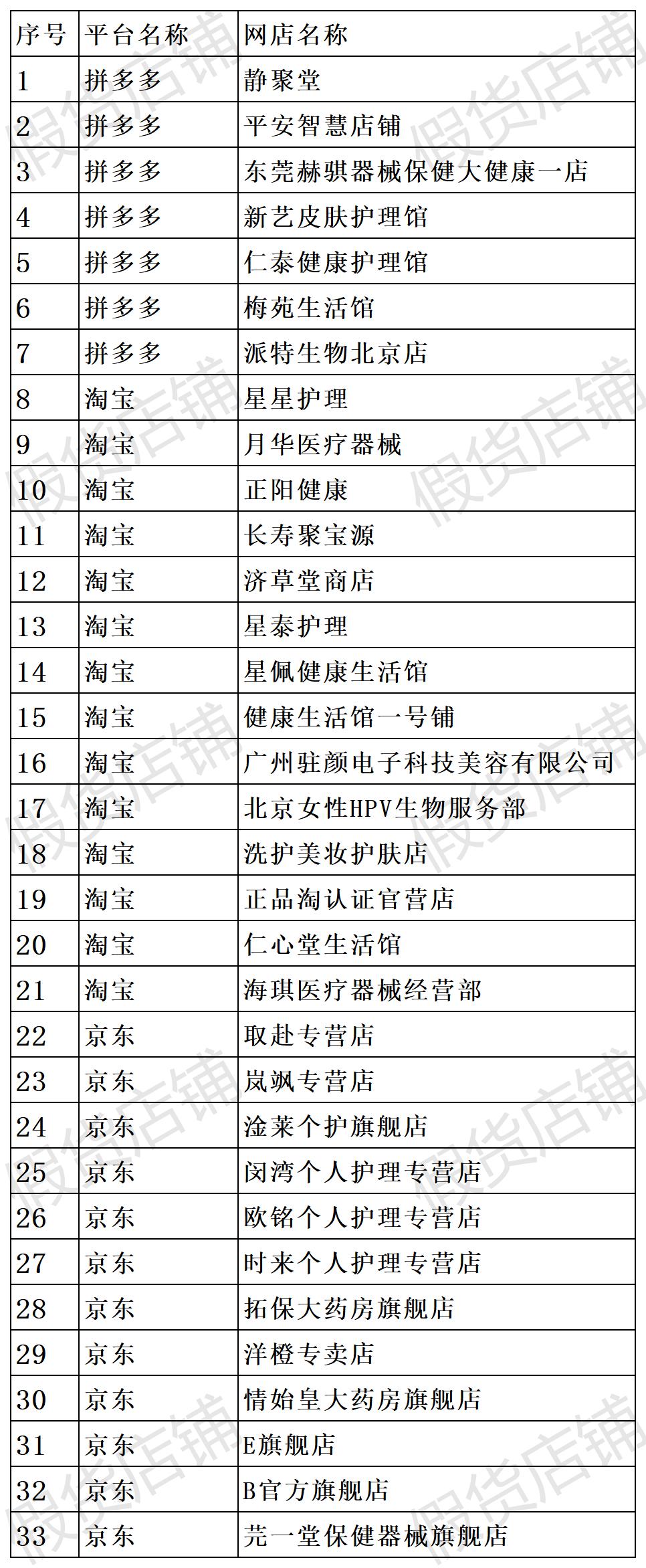 经调查取证,销售祛白铜假货的网店名单包括但不限于以下商家: